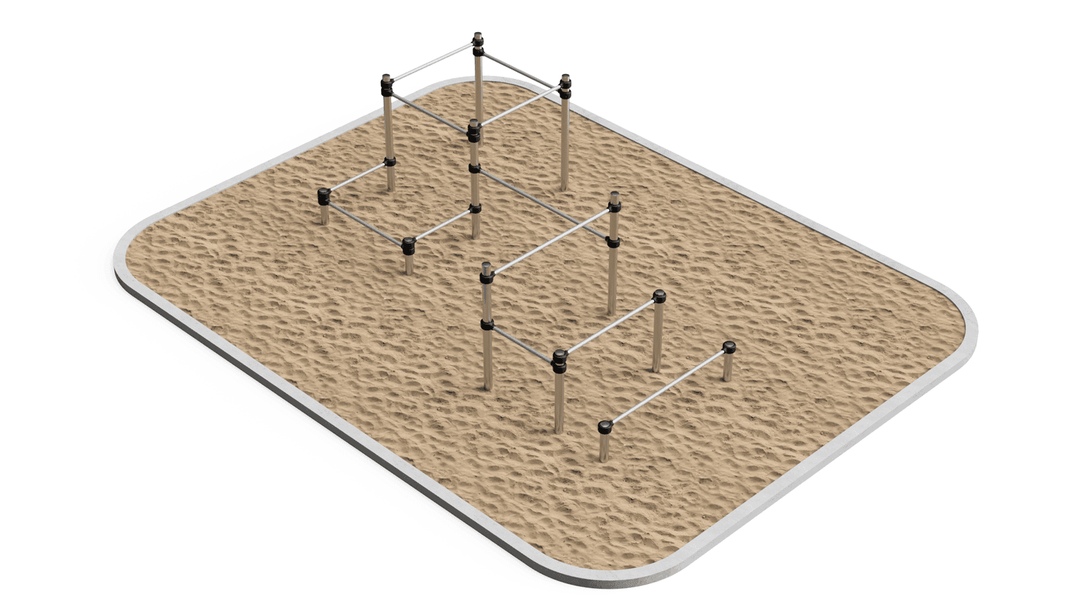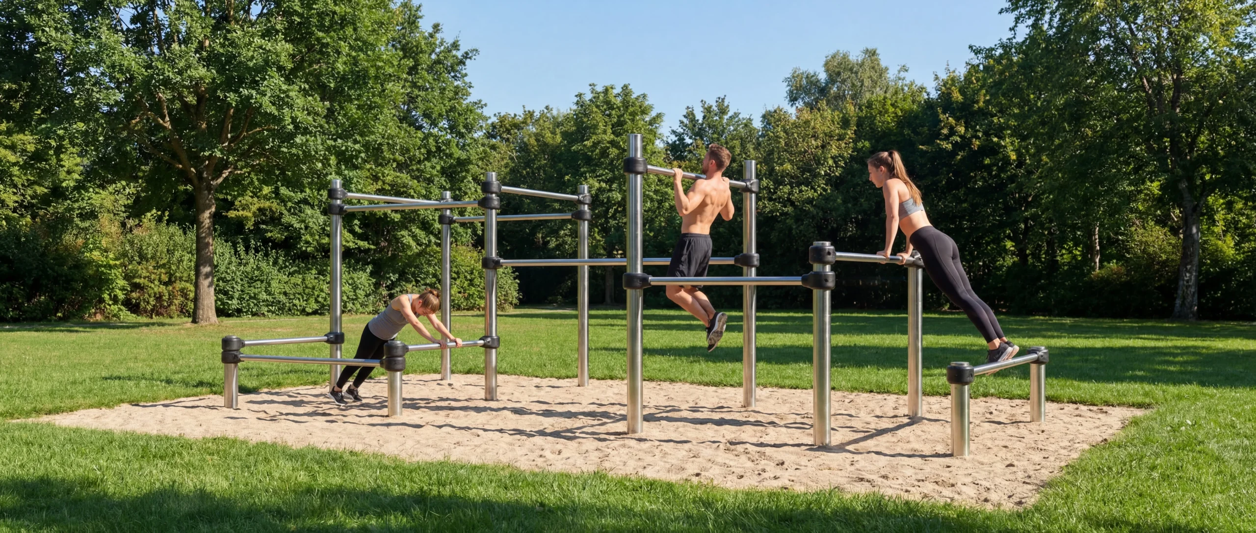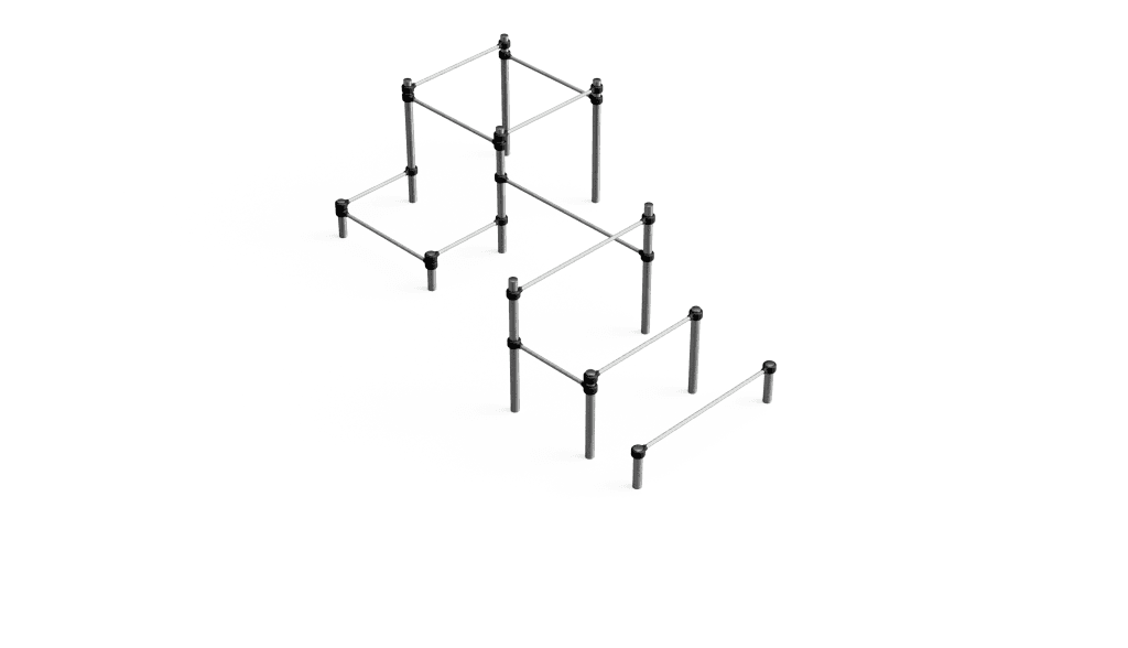 High-quality steel horizontal bars with a 48.3 mm diameter, galvanised for durability and optimal grip—perfect for vaults, swings, and dynamic transitions.