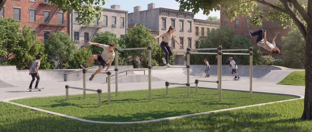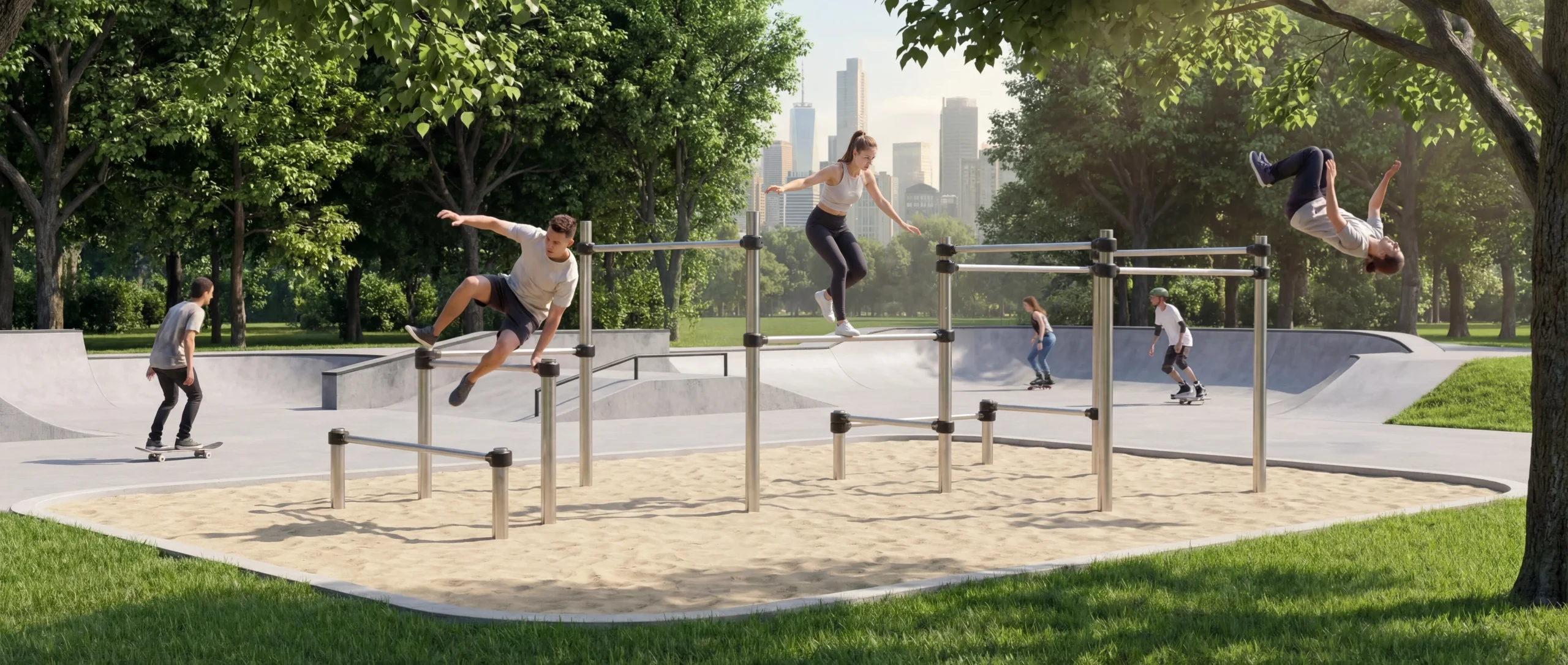 At the core of Urban Flow is a combination of durable materials, modular design, and fluid movement logic—allowing athletes to train speed, creativity, coordination, and strength in a natural and progressive way.